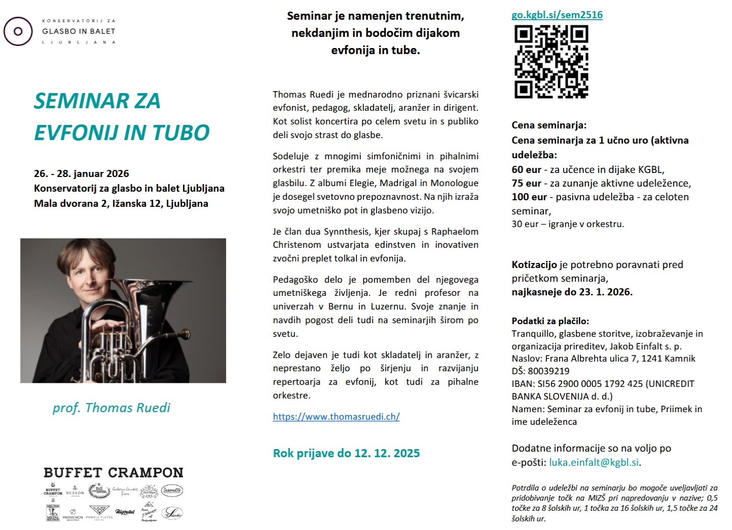 27. 1. 2026, 7:00 PM, Ljubljana Conservatory of Music and